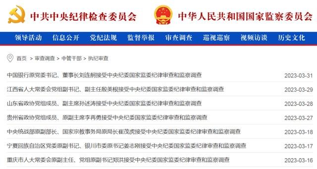 7名中管干部接受审查调查,多名厅局级党员干部接受审查调查或被处理处分。3月,中央纪委国家监委网站受权通报——