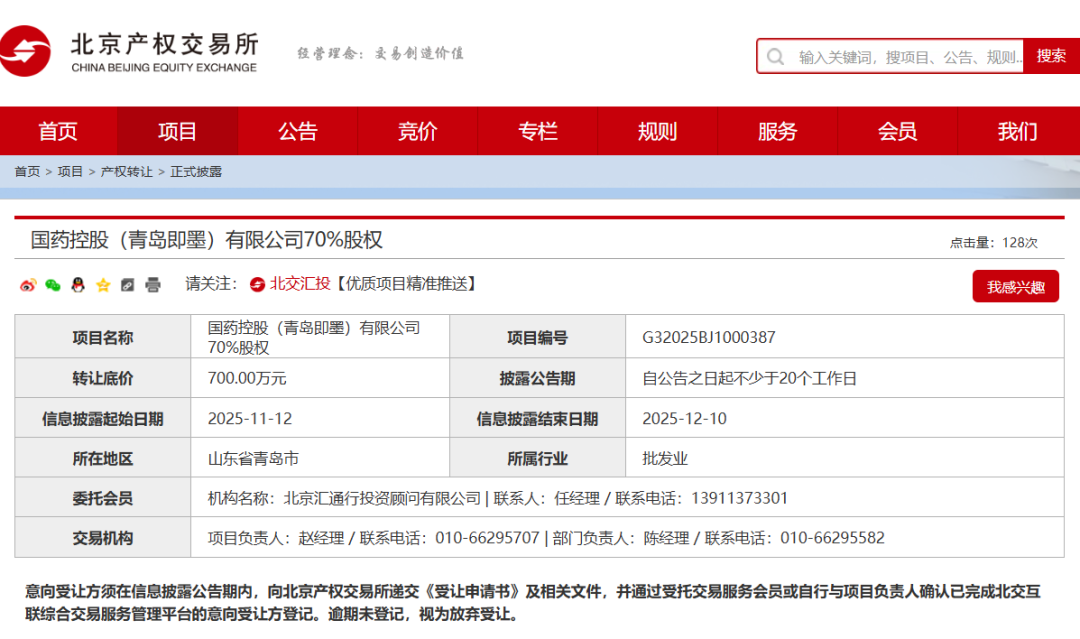 事实上,早在今年8月15日,北京产权交易所就披露了国药即墨的挂牌转让信息,其背后有多重因素交织。