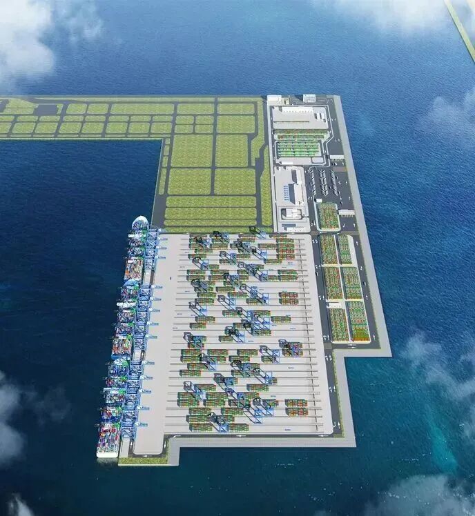 该项目将建设3个集装箱专业化泊位,涵盖1个7万吨级、1个10万吨级和1个15万吨级泊位,码头岸线总长1167米,堆场用海总面积125.97公顷,设计年通过能力320万TEU(标准箱),且码头及堆场均按全自动化标准打造。