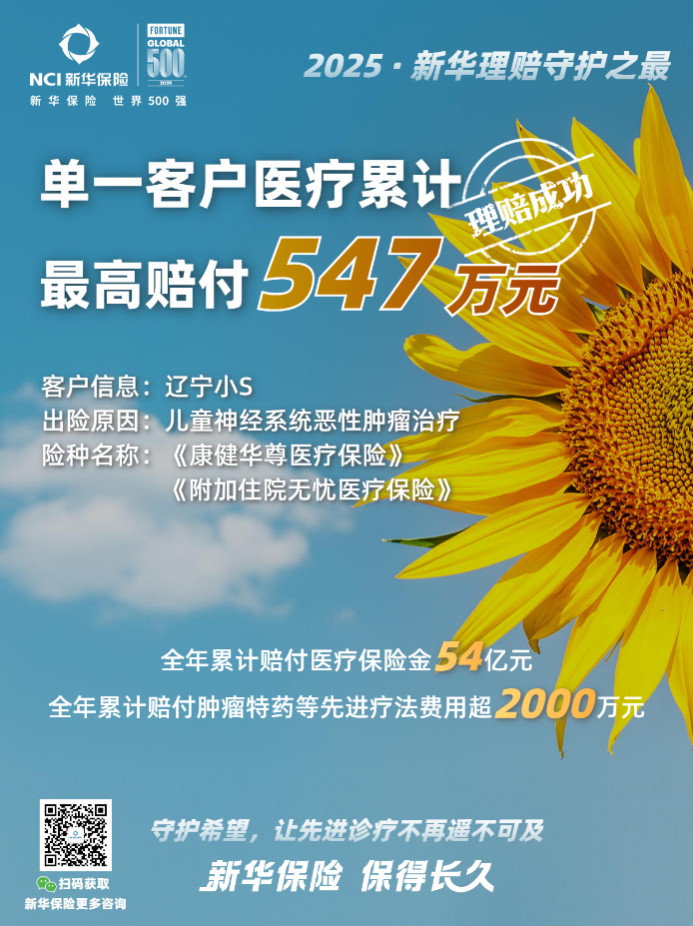 2025年,新华保险全年累计赔付医疗保险金54亿元,其中肿瘤特药等先进疗法赔付超2000万元,持续守护着更多客户的健康与生命。这些数据背后,是一个个真实的故事: