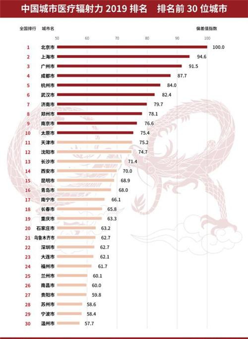 中国城市医疗辐射力2019排名表