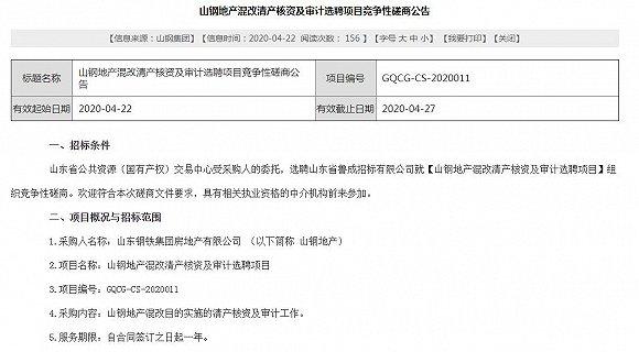 日前,山东产权交易中心发布了《山钢地产混改清产核资及审计选聘项目竞争性磋商公告》。公告内容显示,山东省公共资源(国有产权)交易中心受采购人的委托,选聘山东省鲁成招标有限公司就“山钢地产混改清产核资及审计选聘项目”组织竞争性磋商。