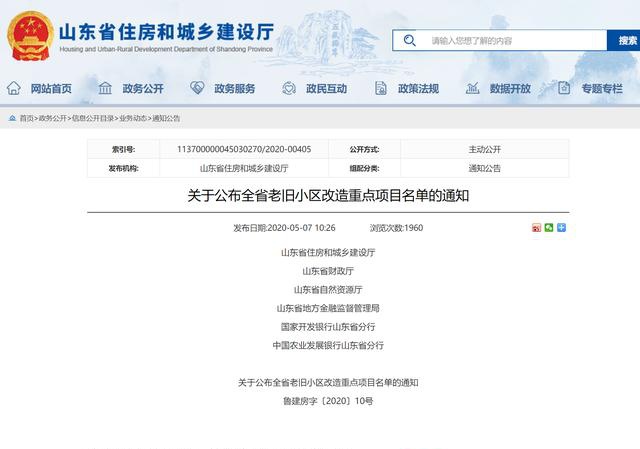 5月7日,山东省住房和城乡建设局对外发布《全省老旧小区改造重点项目名单的通知》,全省确定承担全国城镇老旧小区改造试点任务项目93个,承担“4+N”改造融资模式试点任务项目50个。