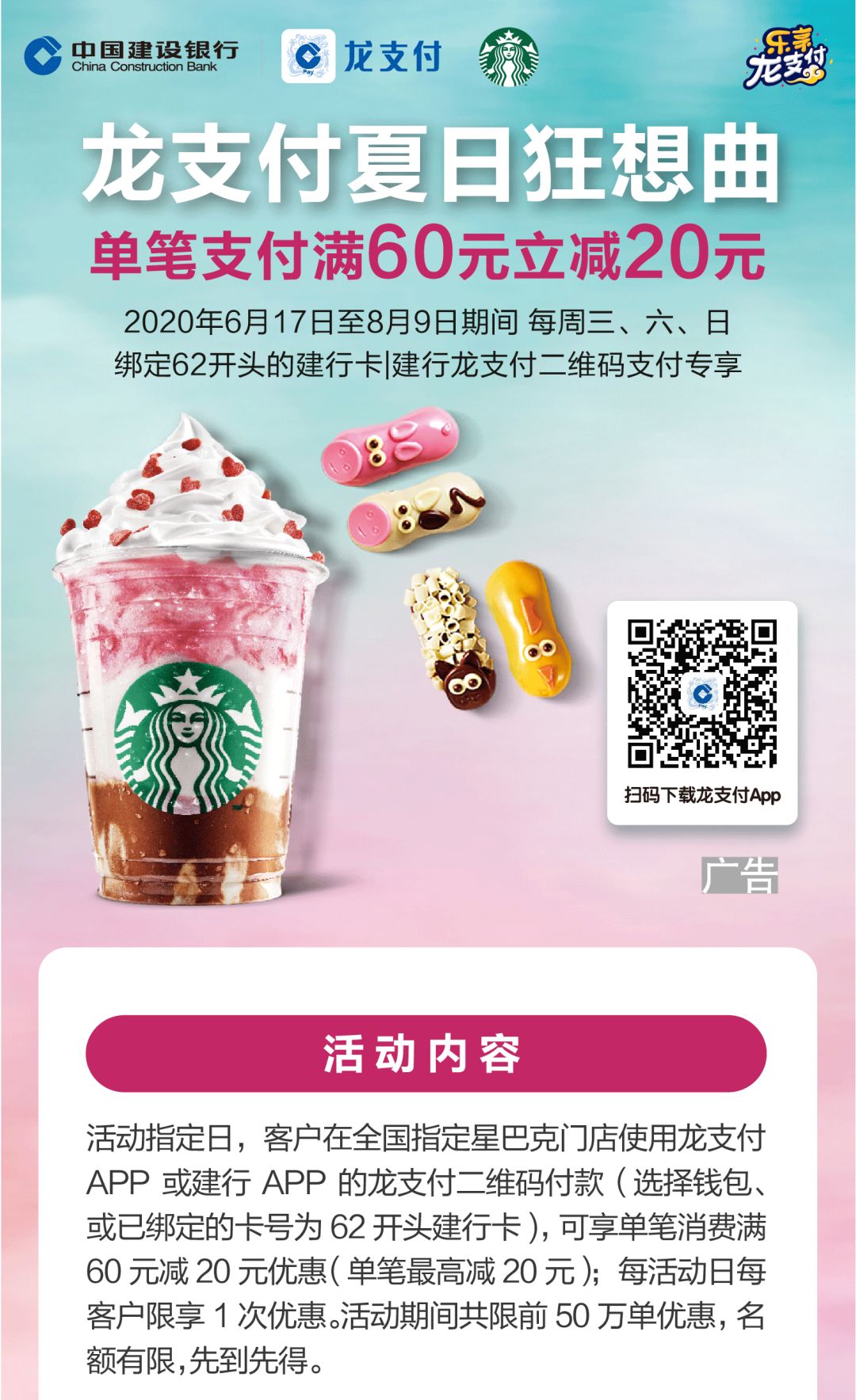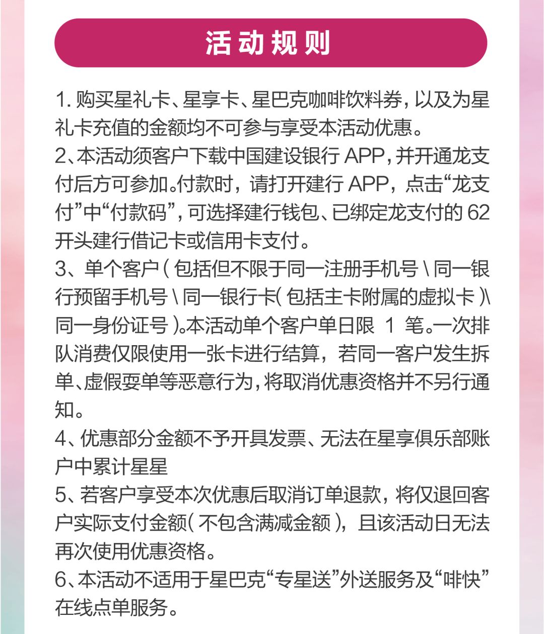 建行龙支付星巴克开启满减活动 单笔最高减20!