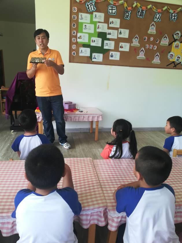 当天,卜祥志在青岛西海岸新区甘水湾幼儿园,与幼儿园的孩子们进行了亲切的互动,教给了孩子们一些简单的国象知识,并赠送每一名孩子一副亲笔签名的国际象棋。