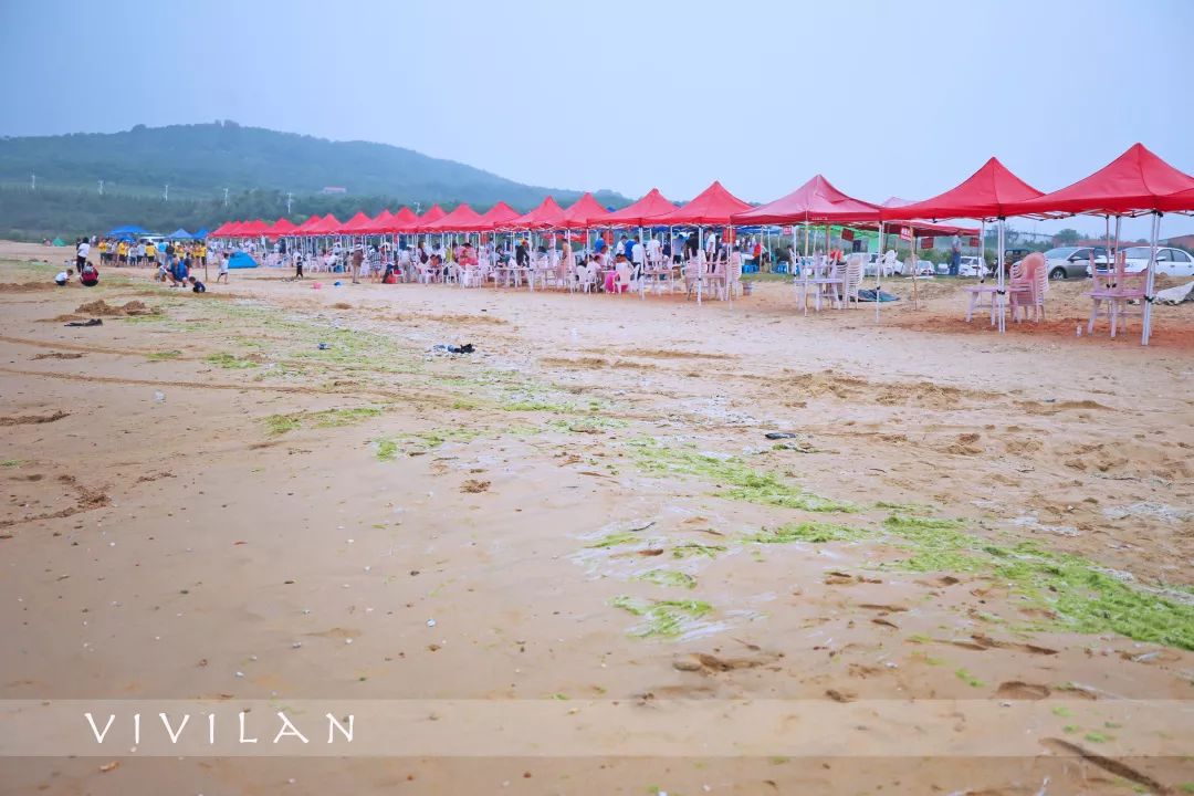 一整片沙滩,搭起百八十个红色和蓝色防晒篷,可以自带烧烤架和食材,也可现场租赁,洗过清凉的海水澡,在篷子下烤个串,来一瓶青岛啤酒,准备充足的,再来半拉片西瓜,这才是夏季应该过的生活!
