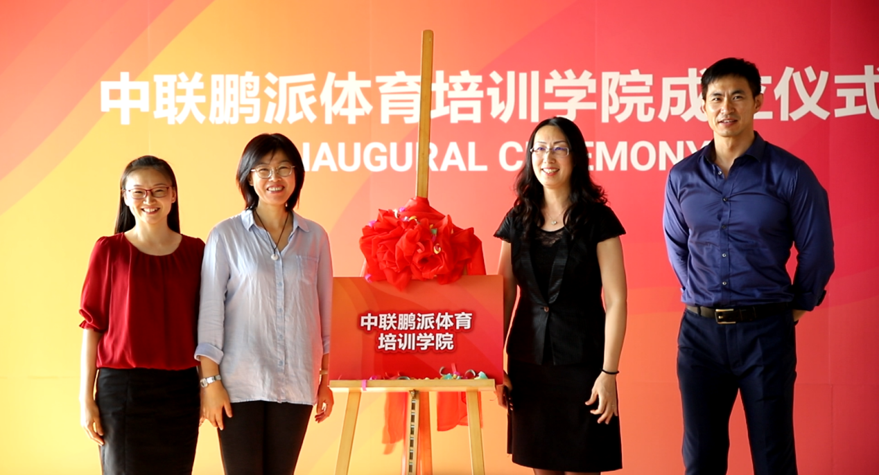 中联鹏派体育培训学院校长吴静(右二)、副校长马靖(左二)、副校长杜鹏(左一)、副校长张建邦(右一) 为中联鹏派体育培训学院揭牌