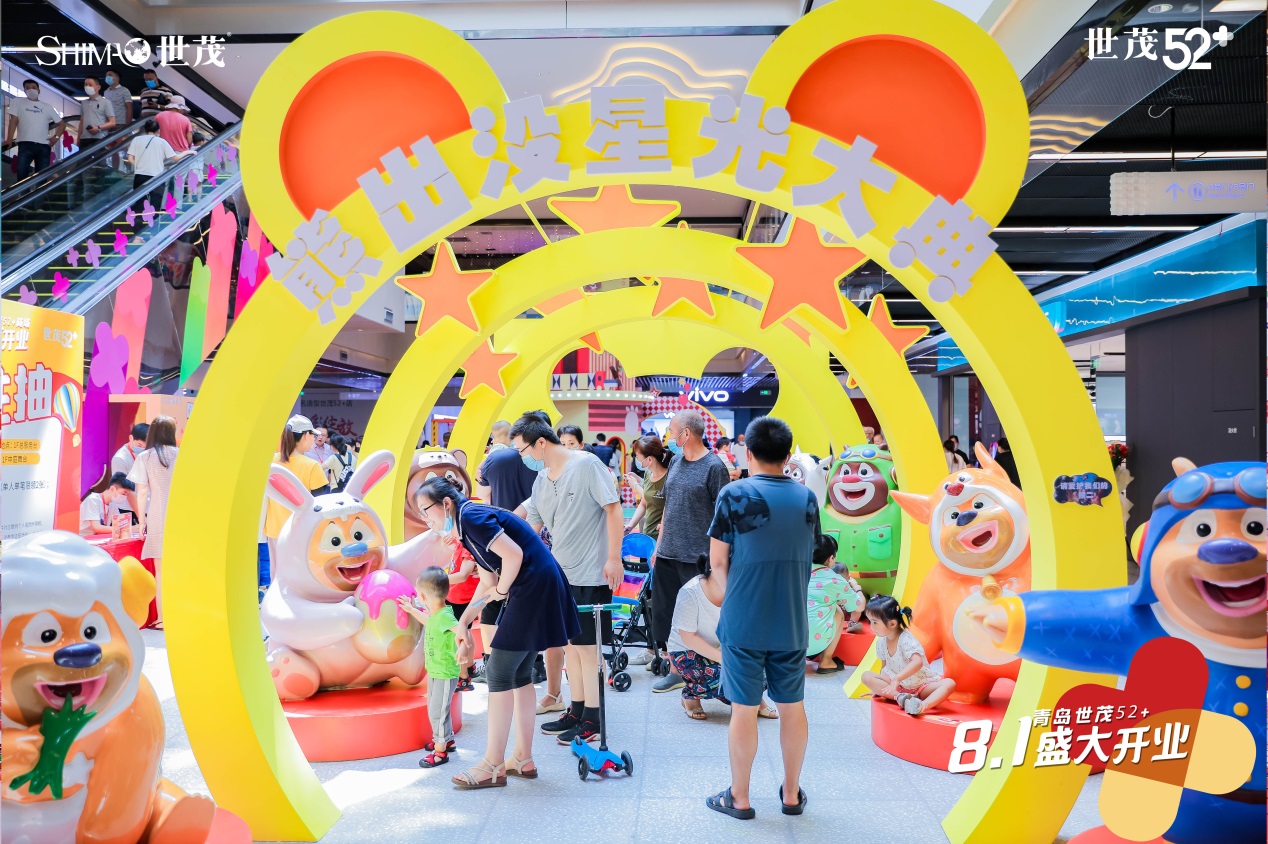 开业期间,青岛世茂52+携手国内最成功的动漫IP《熊出没》为亲子家庭打造星光盛典,吸引了众多消费者参与,现场设有奇趣烟泡树、泡泡乐园,以及系列演出接连登场,营造了浓厚的体验式互动氛围。