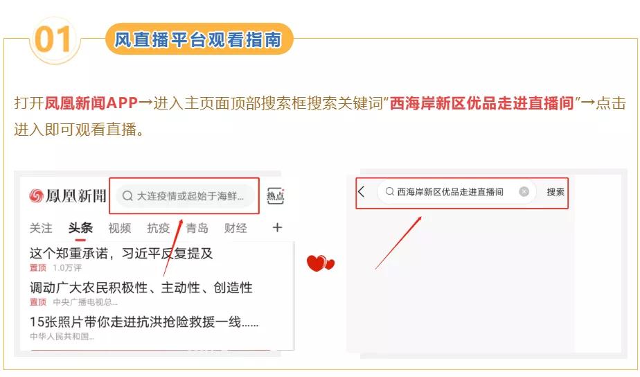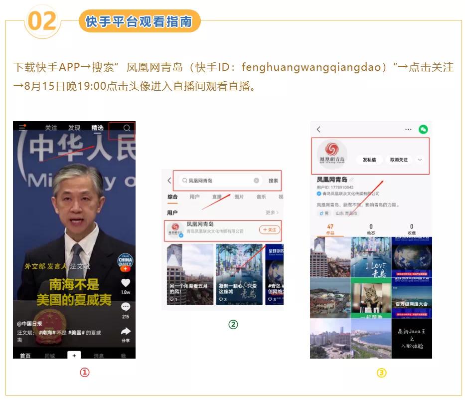 8月15日19:00,青岛西海岸“新区优品”直播带货专场活动将在凤凰网直播平台“风直播”以及快手短视频平台同步直播。大家一定要留好这份直播平台观看指南,不要错过当晚的直播哦~