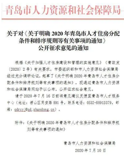 2020年2月25日下午,青岛正式印发实施《关于加强人才住房建设和管理的实施意见》,根据文件最新要求,2020年全市计划建设和筹集人才住房不少于10万套。