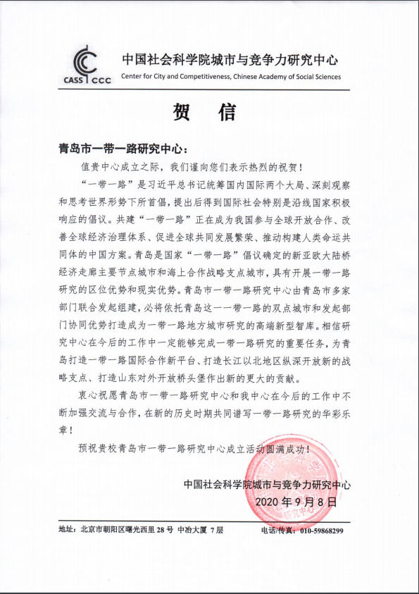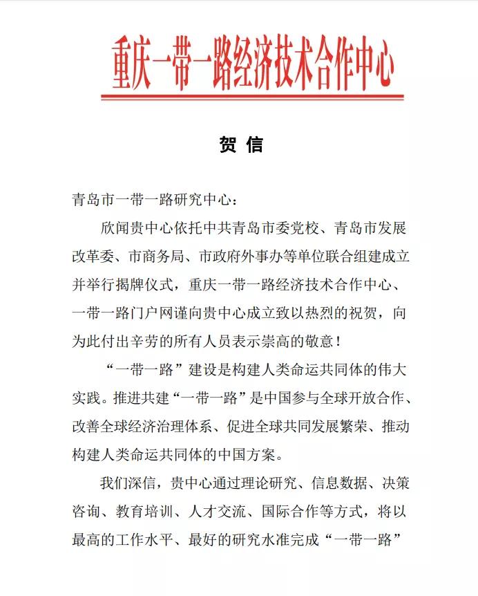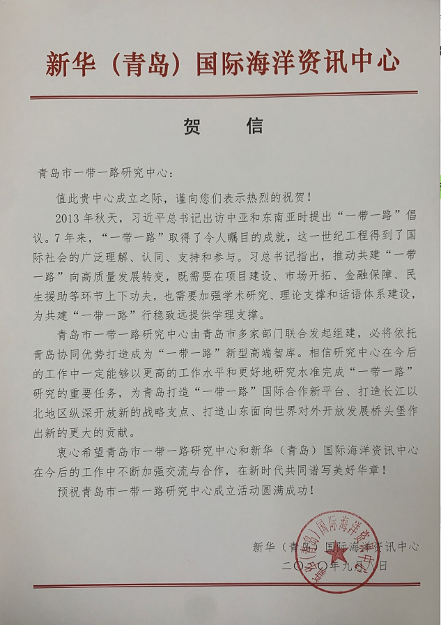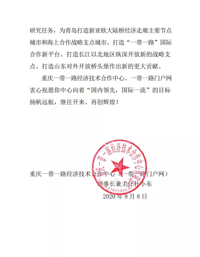 9月8日,青岛市一带一路研究中心揭牌成立,是为服务青岛建设上合示范区、打造“一带一路”国际合作新平台而组建的研究机构和新型智库,承担研究咨询、教育培训和合作交流等职能。