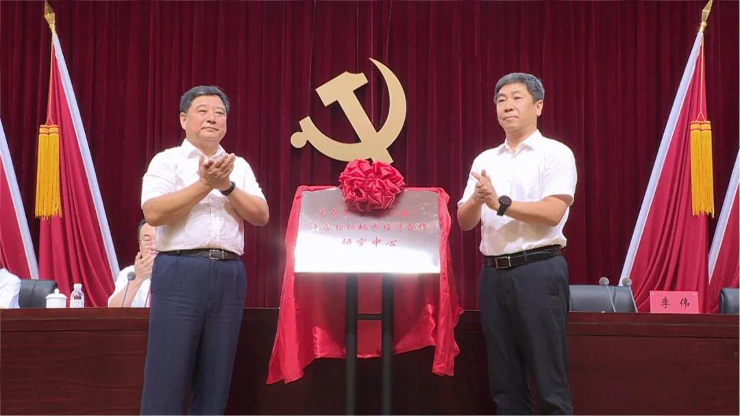 山东省青岛市委常委、组织部部长李伟;山东省委党校(山东行政学院)常务副校(院)长徐闻共同为青岛市一带一路研究中心揭牌。