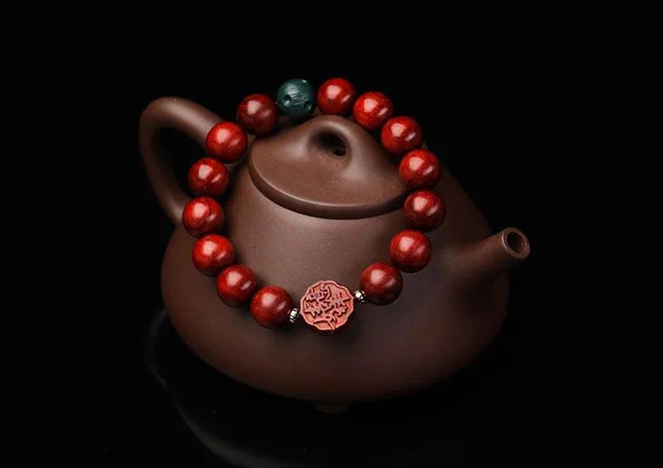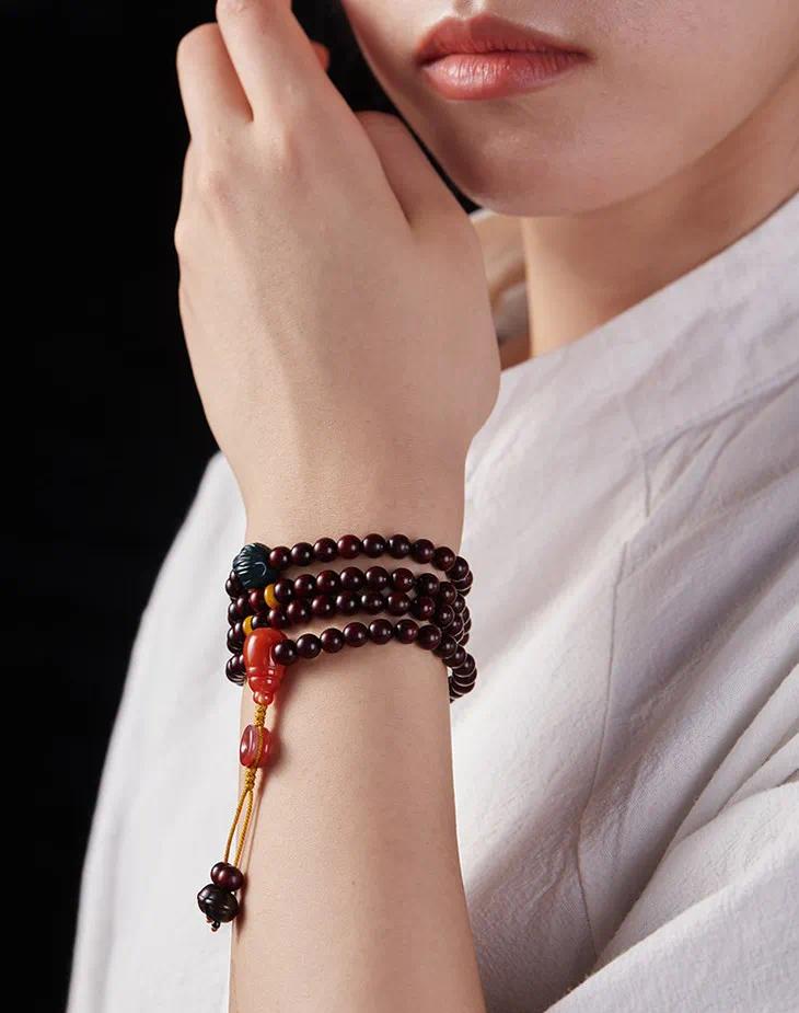 编绳尾端串上小叶紫檀宝瓶,就像为你收住一辈子的运气,挂在身上,更添心安。