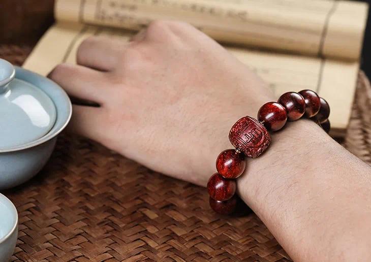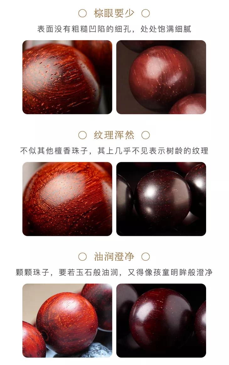 这小叶紫檀手串,从原材到成品的7道至重要工序,皆由有十多年经验、对小叶紫檀特性非常熟悉的老师傅手工制作,确保颗颗皆珍品。