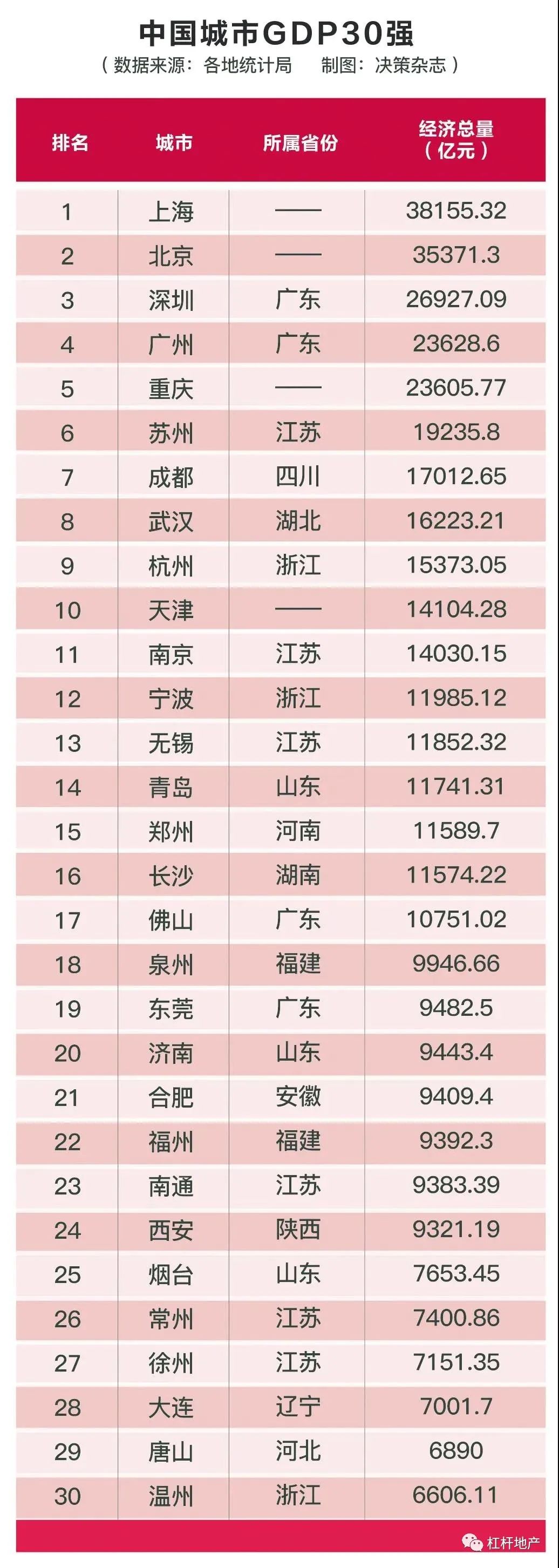 2019年主要城市GDP 图表来源|决策杂志(特此感谢)