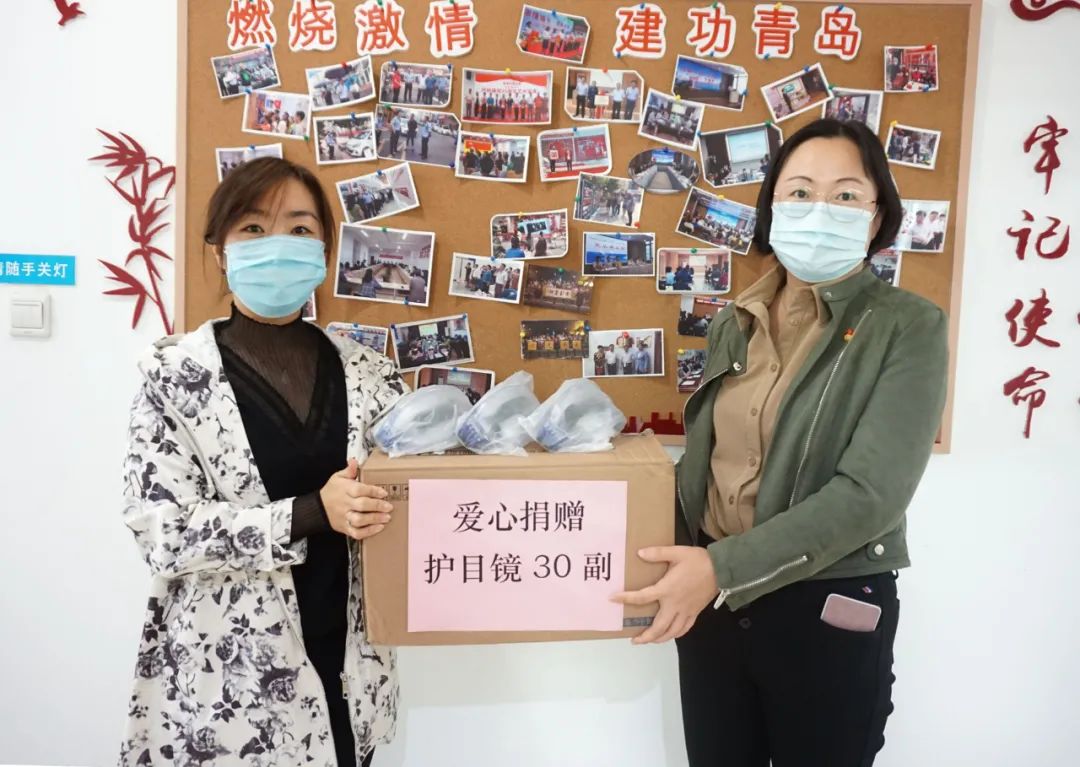 今年年初,马女士曾参与所在单位爱心捐赠活动,她多方联系专业护目镜生产厂家,自费购置了一批护目镜。近期得知社区正在进行核酸检测工作,她当即决定将自己手中的30副护目镜捐赠给社区。香港中路街道办事处工作人员表示,他们会尽快将护目镜送到社区一线工作人员手中,同时,也对马女士的爱心行为表示衷心地感谢。