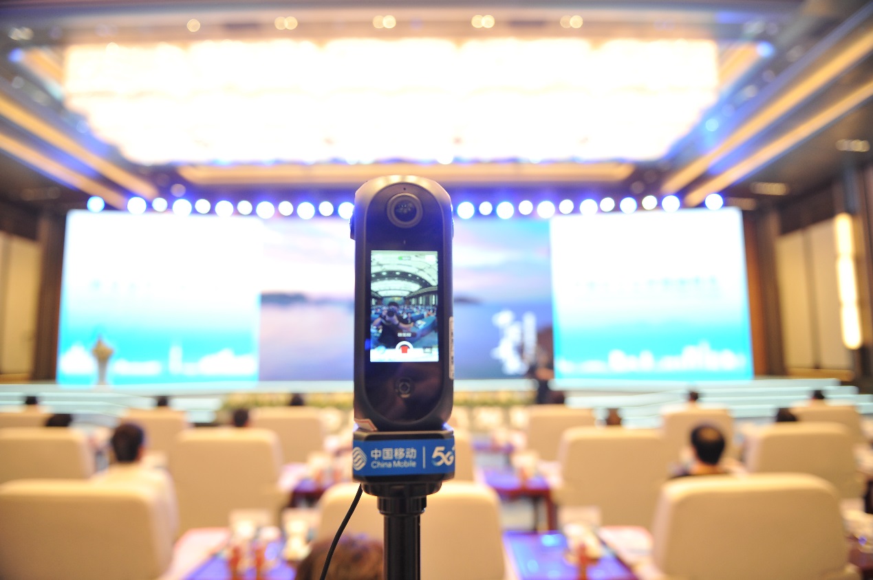 相比以往,本次活动通过中国移动5G+VR技术对会议现场进行了实时全景直播,10万线上观众身临其境的参与活动现场。青岛移动在会议现场布置了专业VR超高清全景摄像机,通过高速率、低时延的5G网络,将现场超高清画面实时直播,完美呈现会场360度超高清实景,客户使用手机、PAD、电脑等打开H5链接或扫描二位码即可进行全景观看,这种直播方式给线上观众带来与众不同的视觉盛宴。