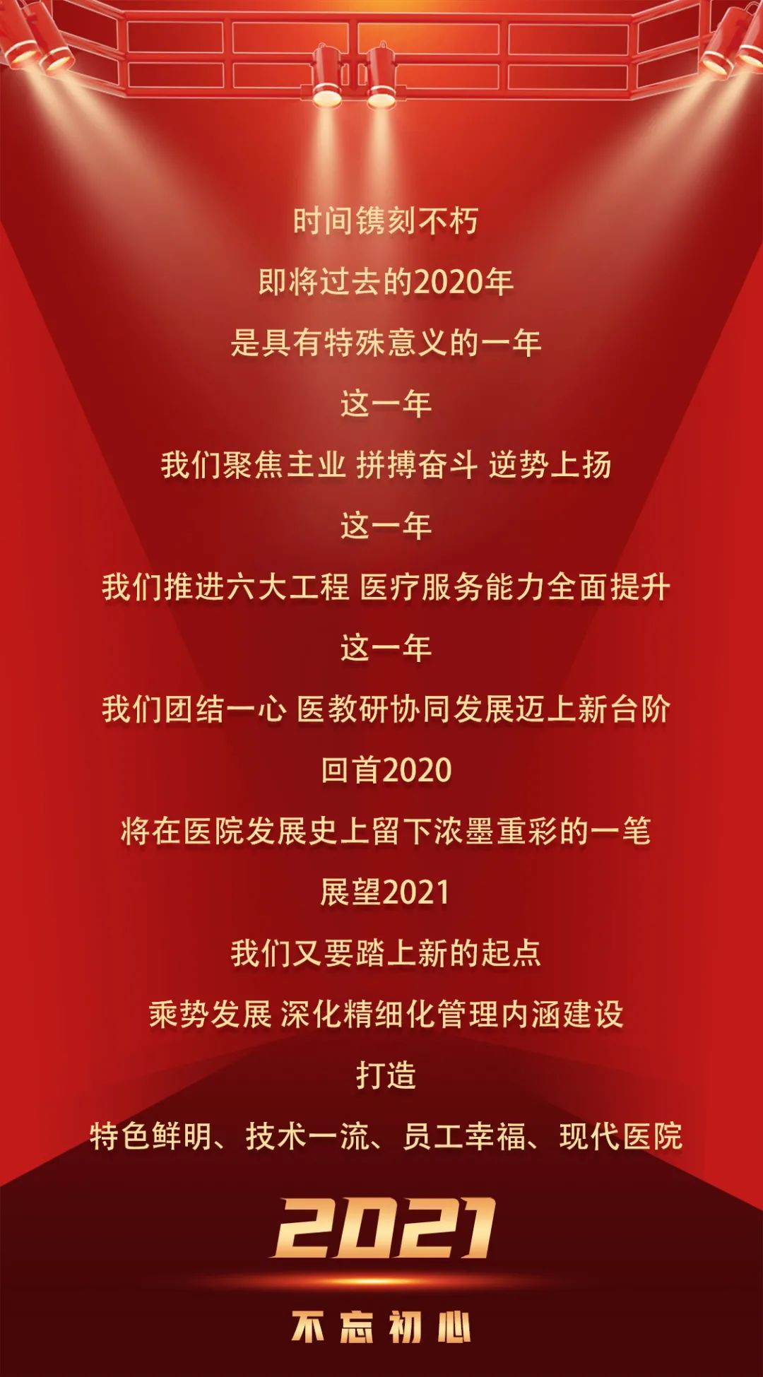 展望2021,集团将更深入推进精细化管理内涵建设。乘势而上,鼓足干劲,打好“十四五规划”的开局之年。深入推进“六大工程”建设,紧抓学科建设主线,以医疗为本,以变求进,坚定不移围绕集团“特色鲜明、技术一流、员工幸福、现代医院”发展愿景,坚持中西医并重,优势互补,努力建设成中医特色鲜明,传统中医与现代医学诊疗技术相融合的三级甲等综合性医院。