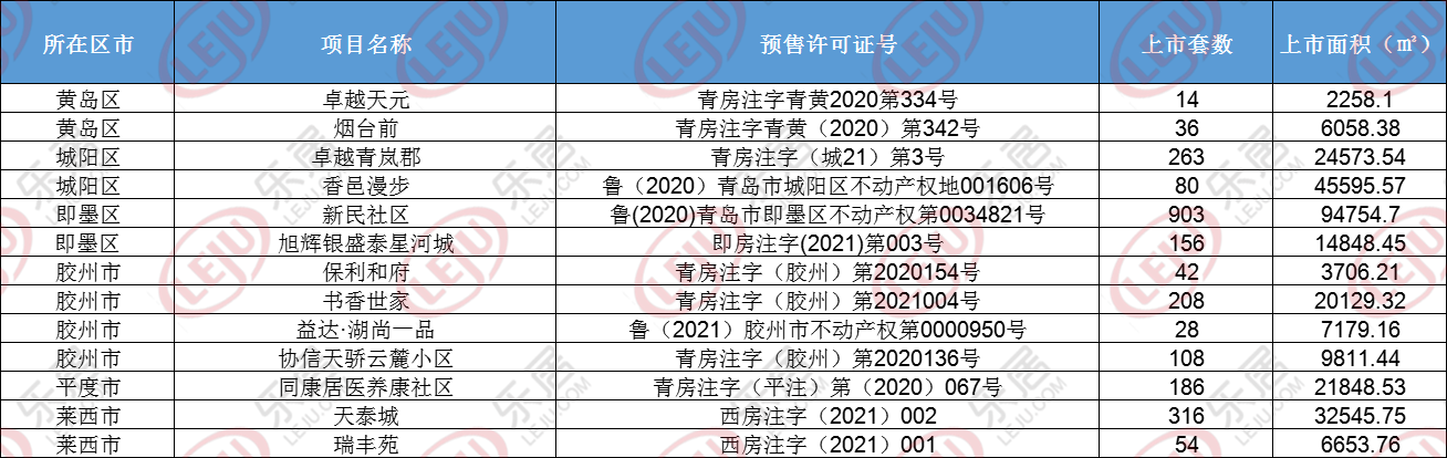 本周青岛共13个项目、2394套房源取得预售许可证。具体来看,胶州领跑全市,共4个项目、386套房源或得预售许可;黄岛、城阳、即墨、莱西四区实力相当,各2个项目拿证。平度相对低调,仅1个项目获得预售许可。