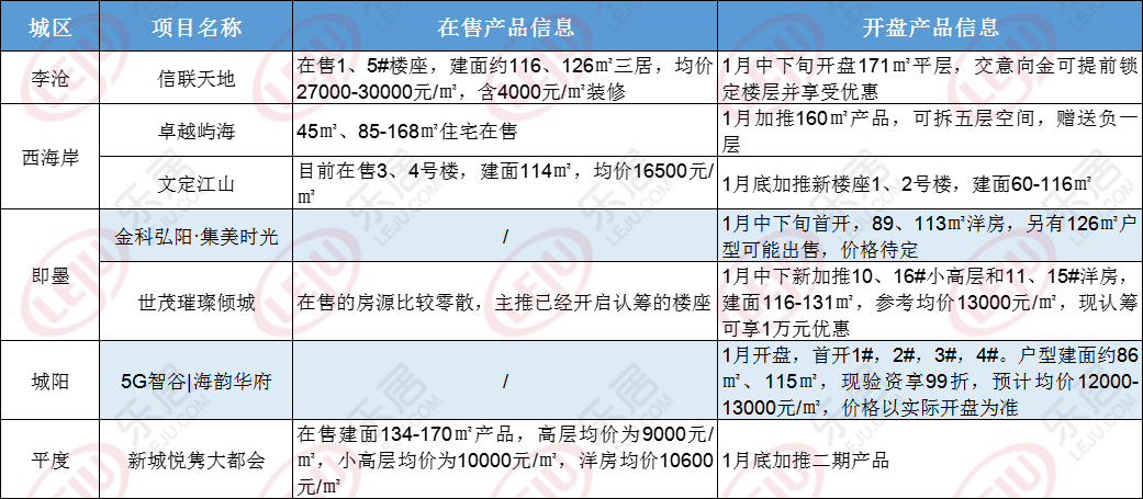 二、青岛下周开盘情况