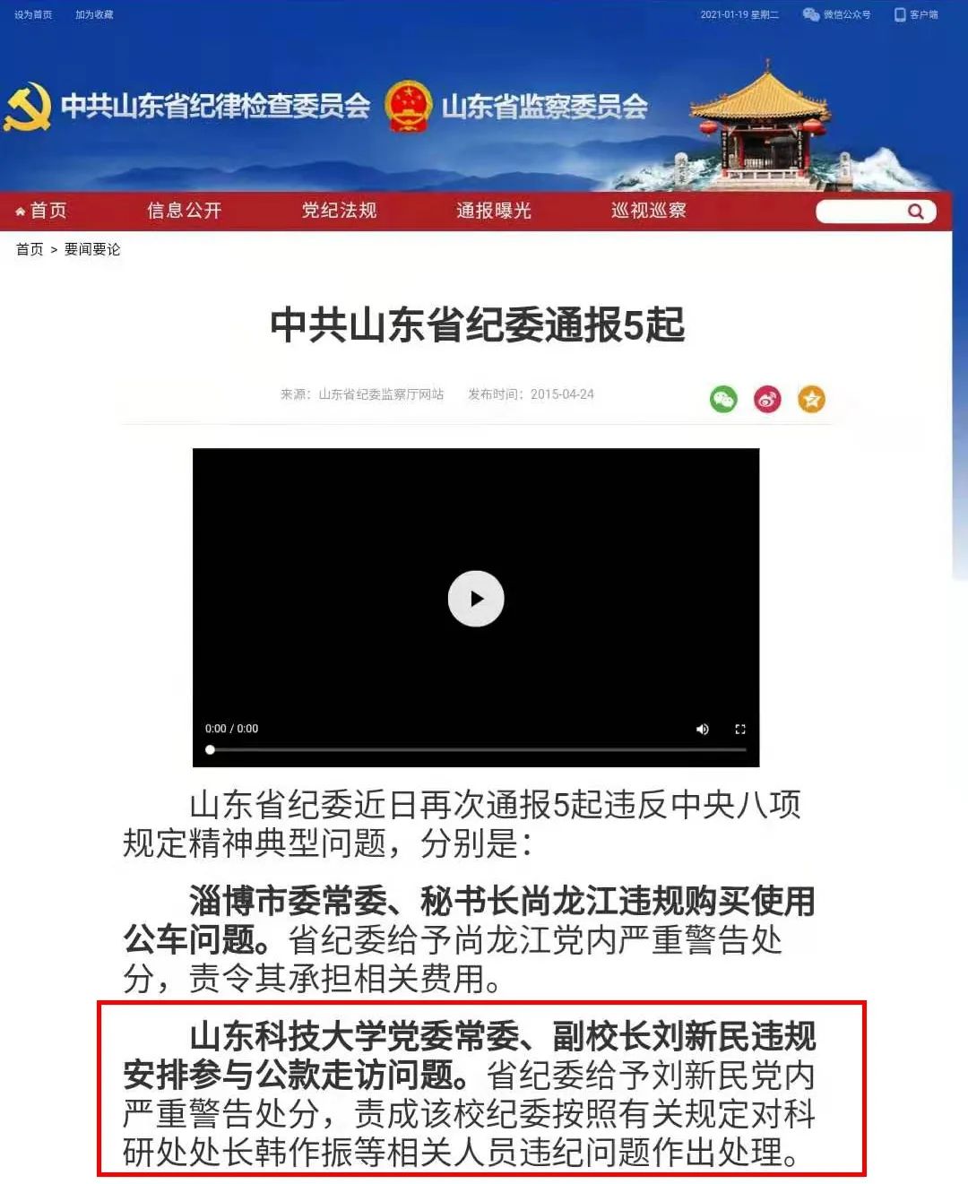 图片来源:山东省纪委监委网站截图
