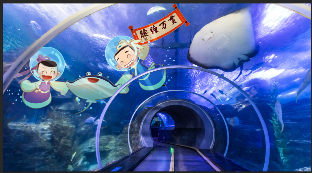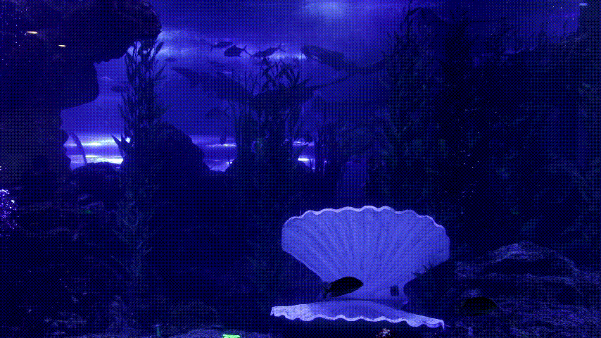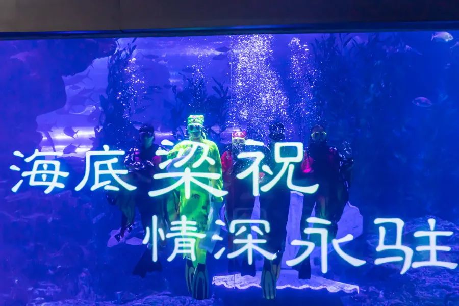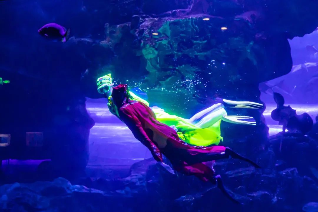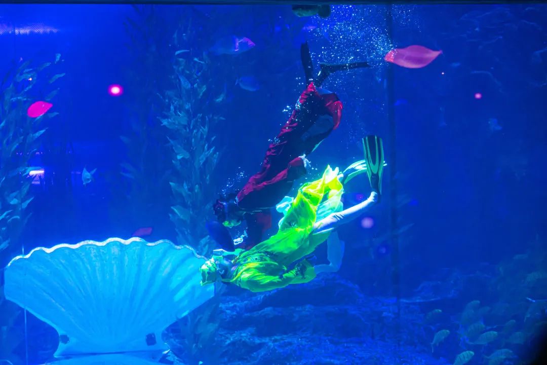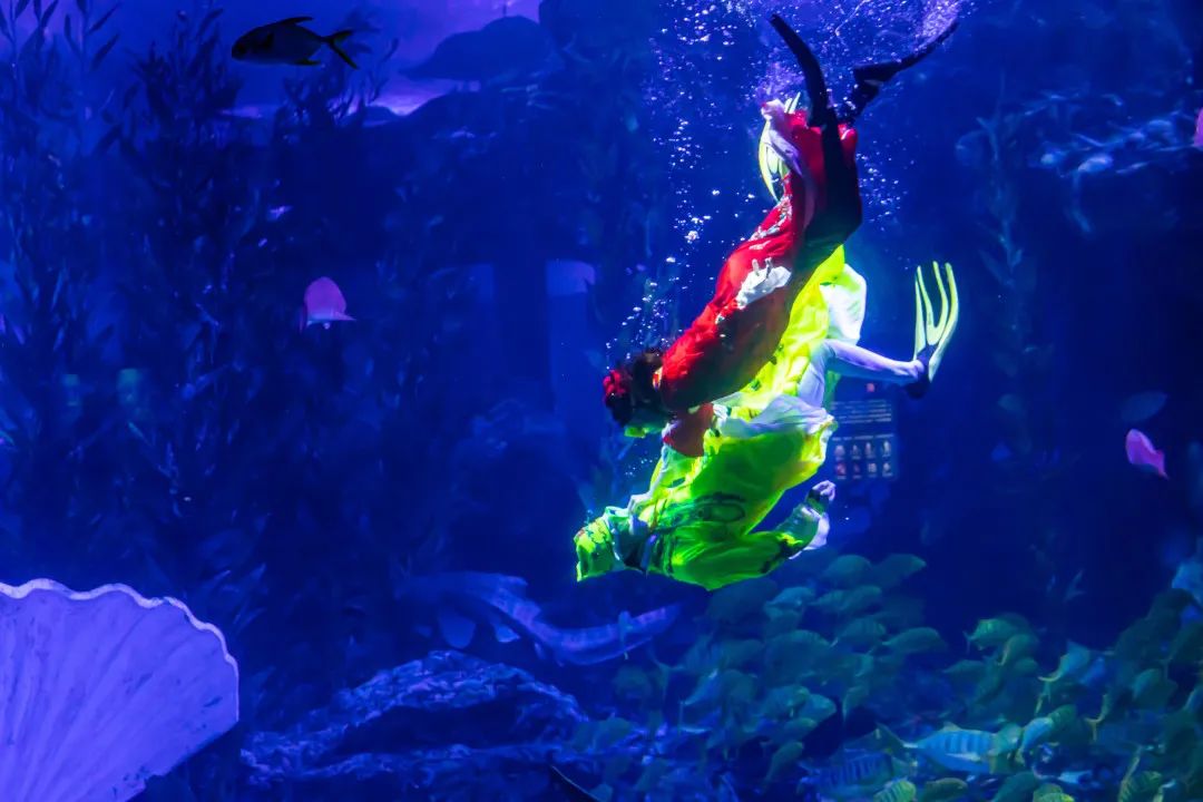 历时三个月精心策划,从原创动画视频到七彩光影打造,运用影像投影系统+高新动漫技术,结合高难度的水下动作编排与惊艳视觉呈现的海底“梁祝”,终于赶在2021年的春节和大家见面啦!