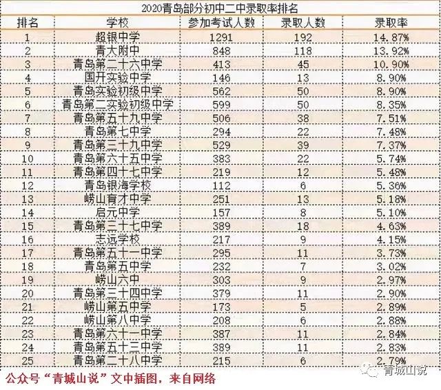 2020年中考中,青岛第二实验初中在青岛二中的达线数量是50人,在青岛市内四区公立初中里排名第1,与青岛实验初中持平,超过26中、39中、59中、7中。二实验在58中的达线人数是62人,仍是特别优秀。
