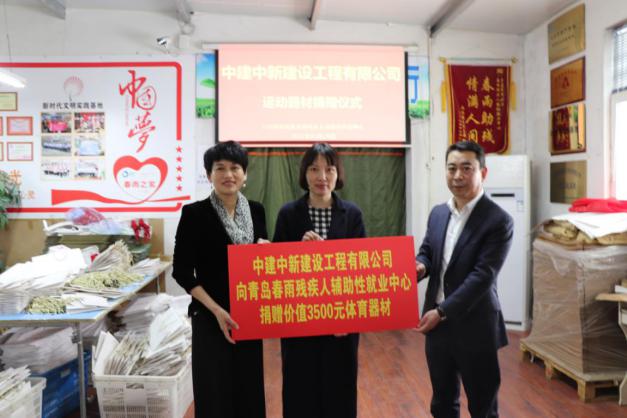3月26日,位于青岛市市北区的春雨残疾人辅助性就业中心内暖意融融,为帮助解决就业中心心智障碍青年健身需求,中建中新建设工程有限公司党委(工会)工作部主任阚开莲、安装公司党支部书记刘运波带领青年志愿者送来关怀和慰问,捐赠了篮球架、乒乓球台、羽毛球拍等各类体育运动器材。