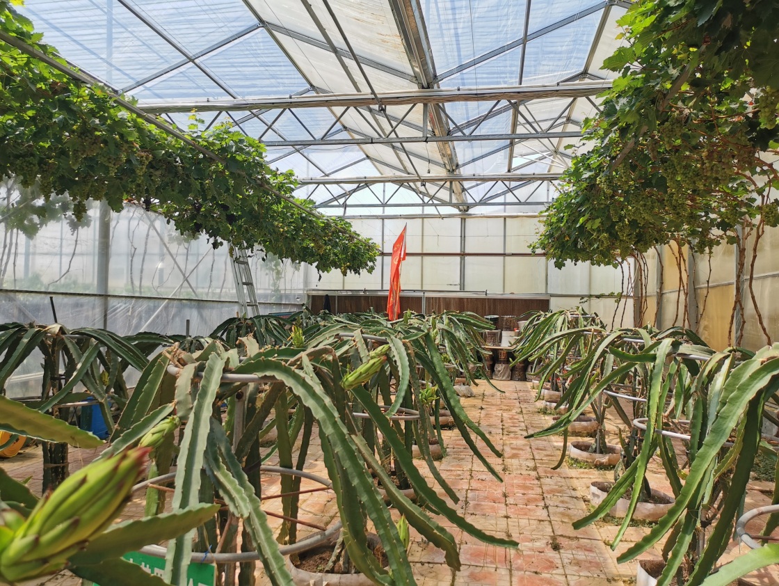 春节前,青岛正值隆冬季节,但是在沙北头蔬菜合作社的种植基地里,却是绿意盎然、硕果累累的丰收景象:一排排两米多高的大盆景葡萄,虬枝盘旋;上千盆盆栽荔枝,俨然在等待着“妃子笑”……