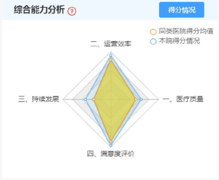 根据综合能力分析结果,青岛妇儿医院在医疗质量、运营效率、持续发展和满意度4个维度得分均高于全国同类医院得分,尤其满意度指标中,住院患者满意度及医院人员满意度两项达到满分值。这份成绩单的背后,是医院医疗质量安全、运营管理水平不断提升的写照。