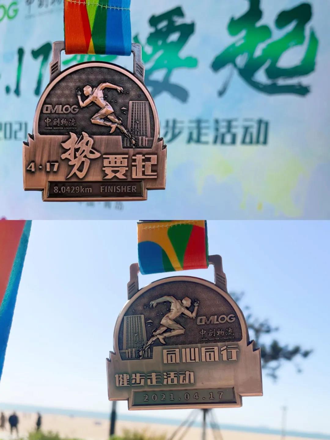 返回终点后公司为每位完成活动者颁发了纪念奖牌。