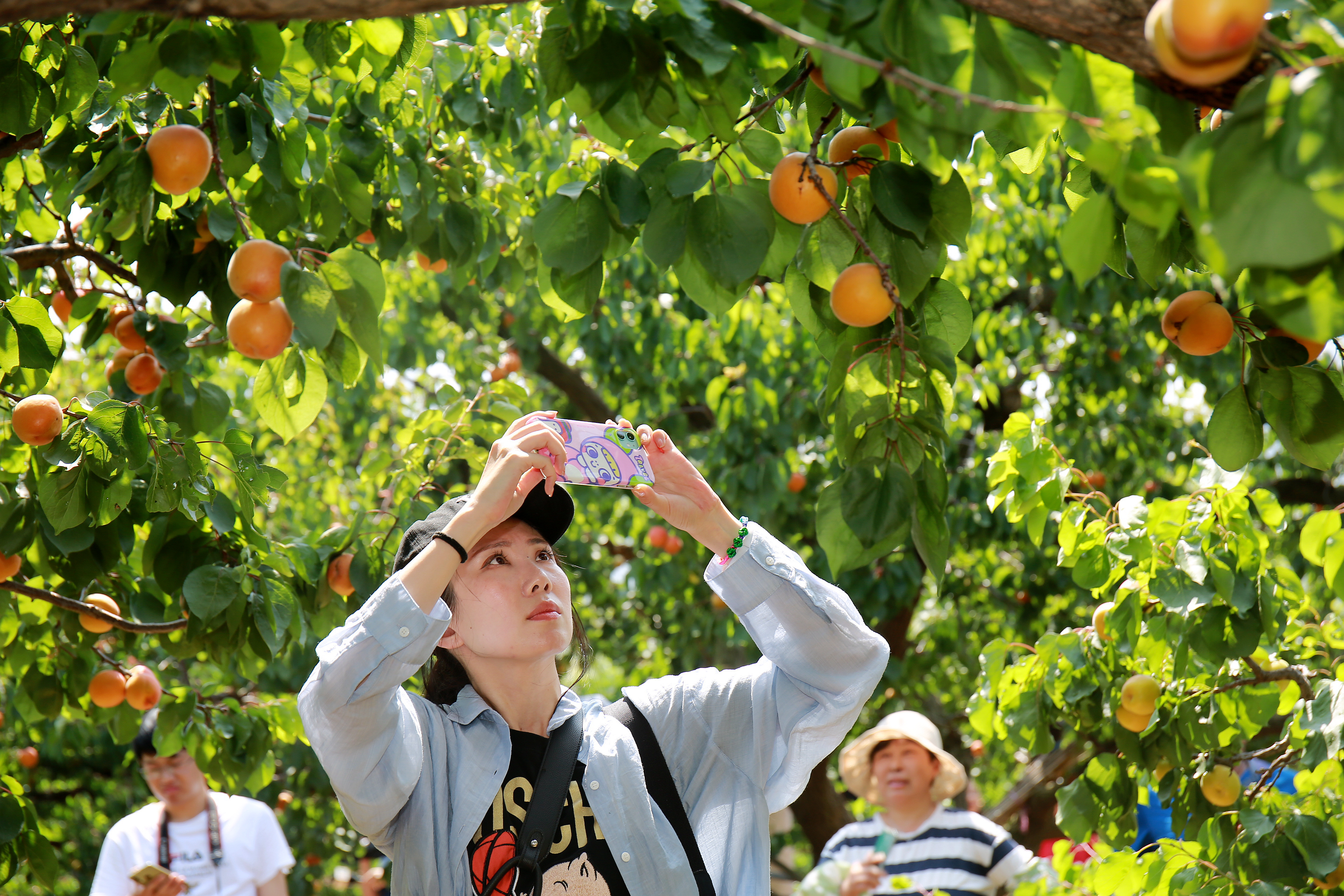 果农告诉凤凰网青岛,市民可根据自己的口味选择不同的时间采摘,如本周末适合采摘大麦黄,下周末则是少山二号、少山红和关爷脸。红杏的采摘期每一个品种有1周多的时间,采摘参考价每人30元。