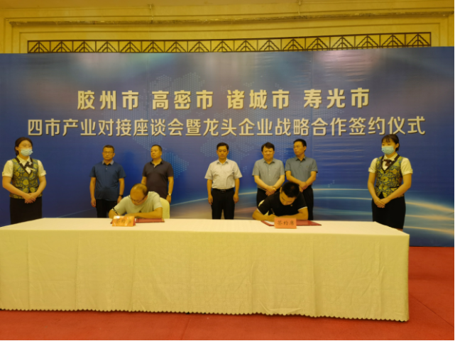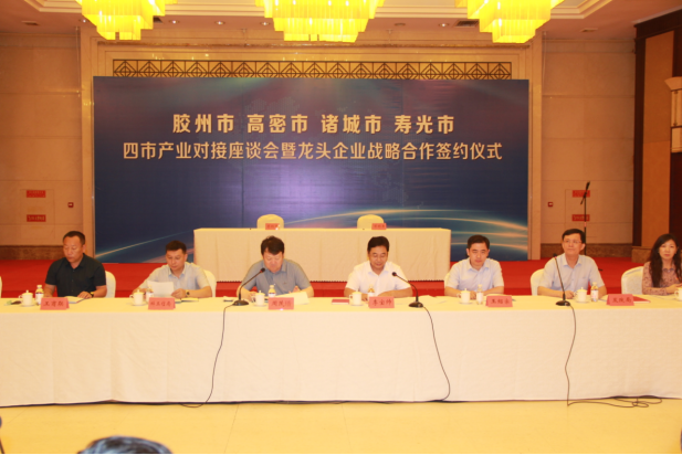 2021年6月29日,胶州市、高密市、诸城市、寿光市四市产业对接大会暨龙头企业战略合作签约仪式在胶州市召开。