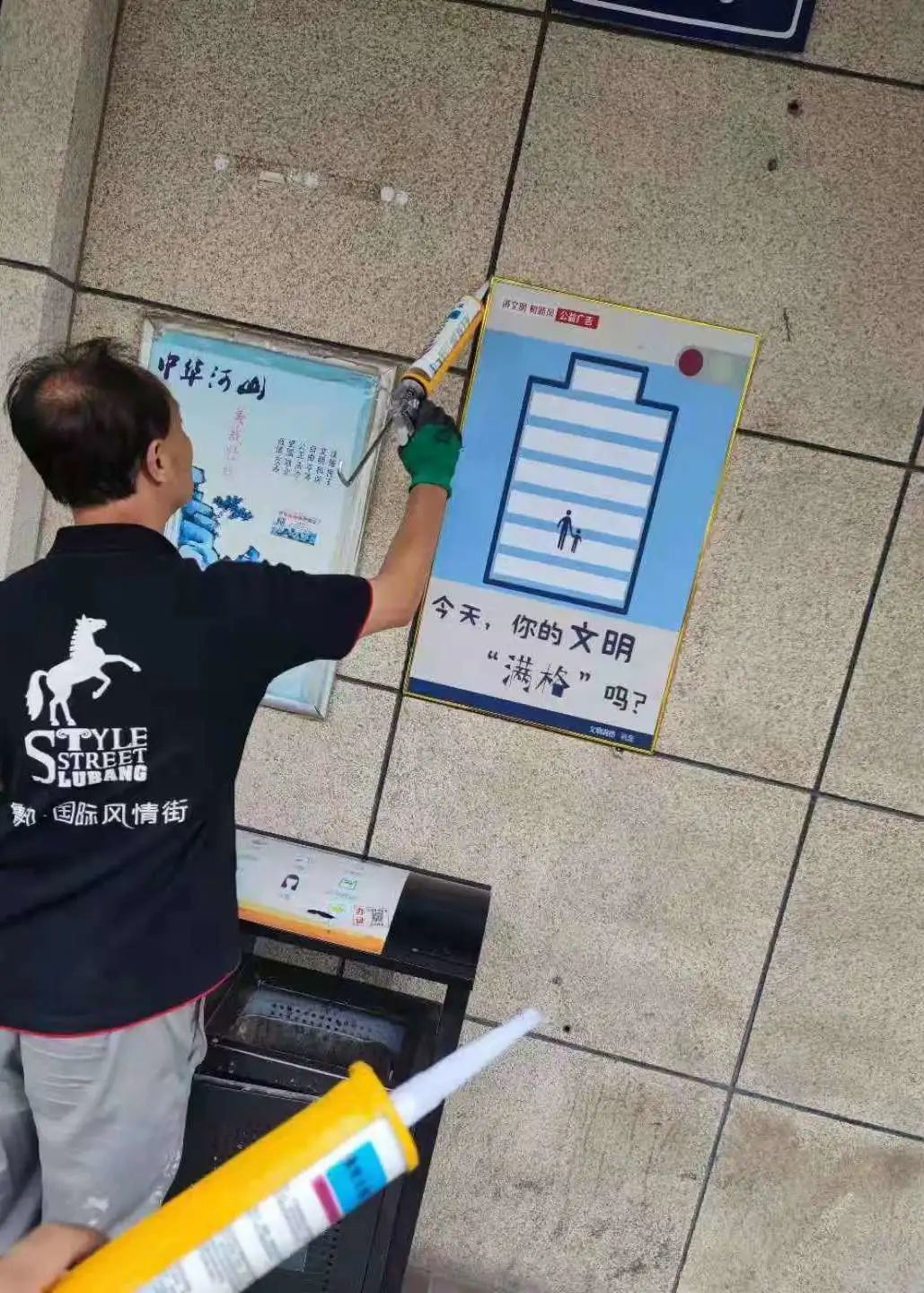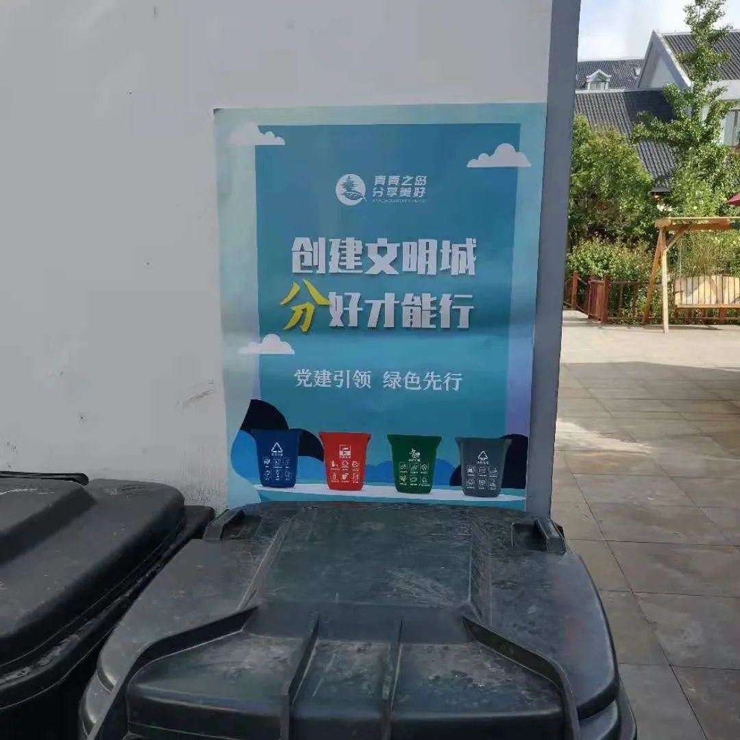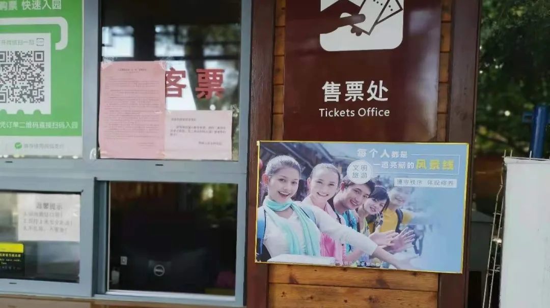 ↑景区各处张贴文明旅游、食品安全、垃圾分类等文明宣传图片