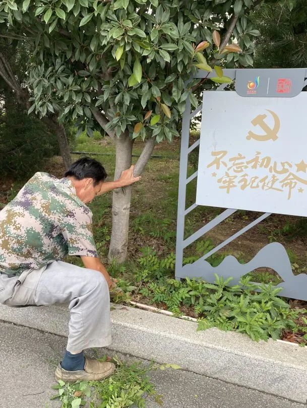 ↑ 工作人员对景区环境卫生进行整治,营造文明旅游环境。