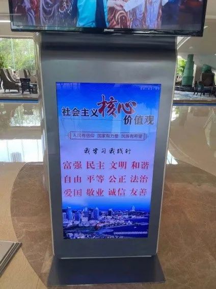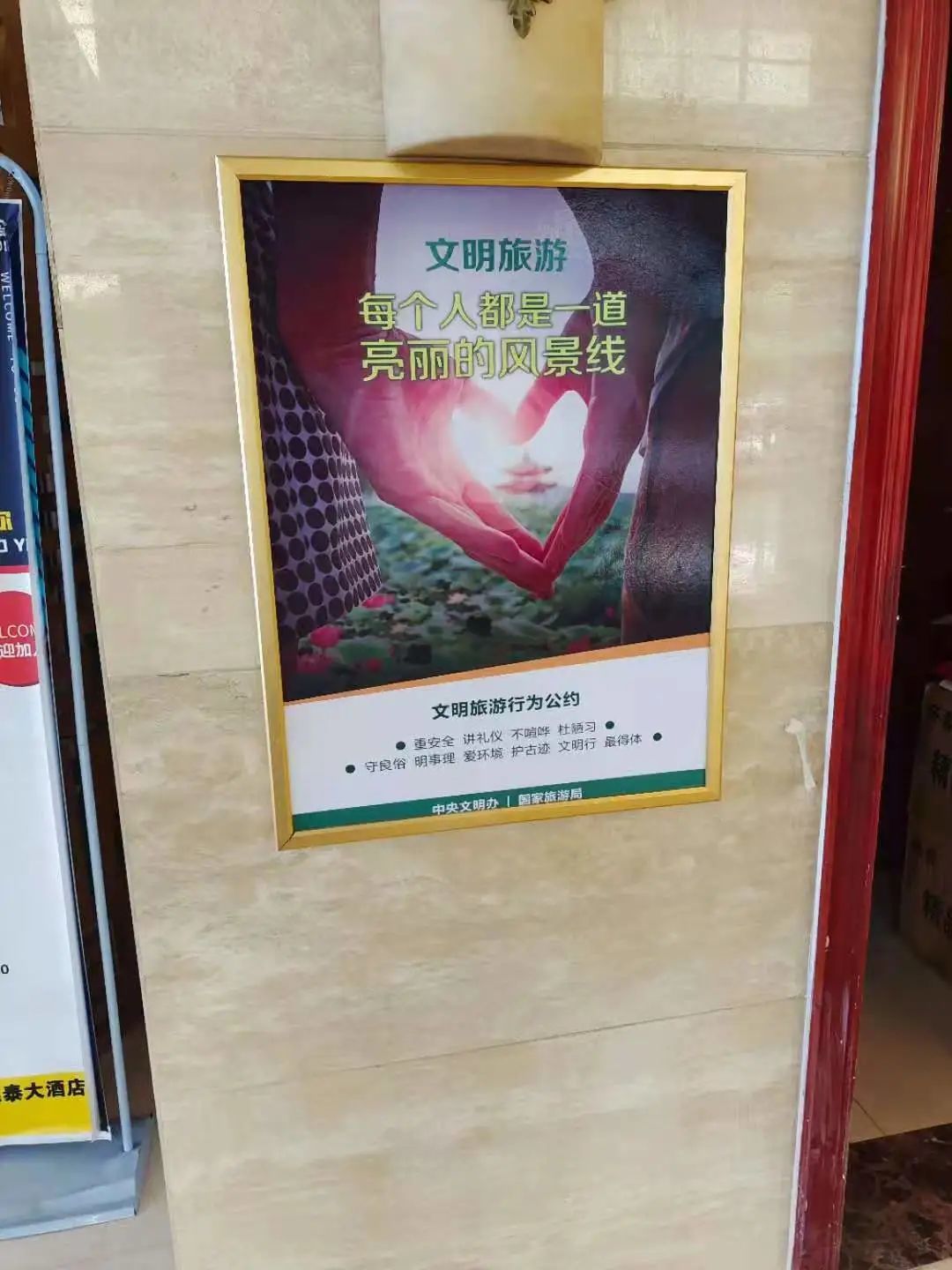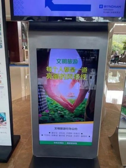 ↑在酒店大堂、各餐厅等主要营业场所,进行图文滚动播放宣传,营造浓郁的文明旅游氛围。