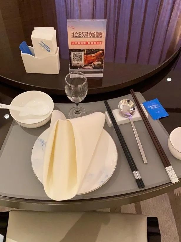 ↑酒店提倡“公勺公筷”,倡导文明用餐