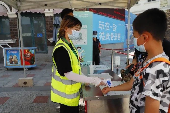 ↑青岛方特积极响应防疫号召,入园双码查验,并测温登记