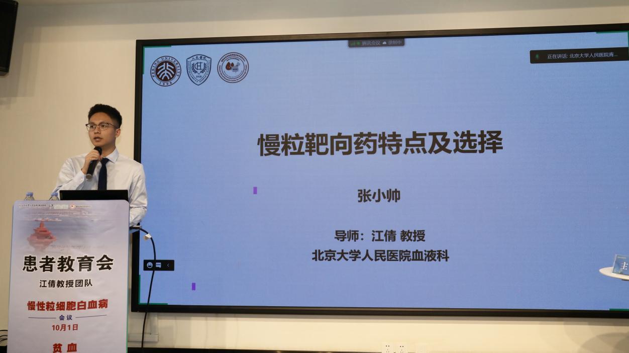 北京大学血液病研究所、北京大学人民医院血液科张小帅医生进行《慢粒靶向药物特点、选择及服用注意事项》讲座。