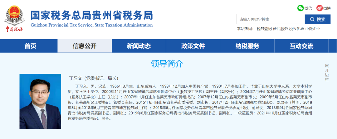 近日,国家税务总局贵州省税务局官方网站的“领导之窗”一栏更新,丁习文出任国家税务总局贵州省税务局党委书记、局长。