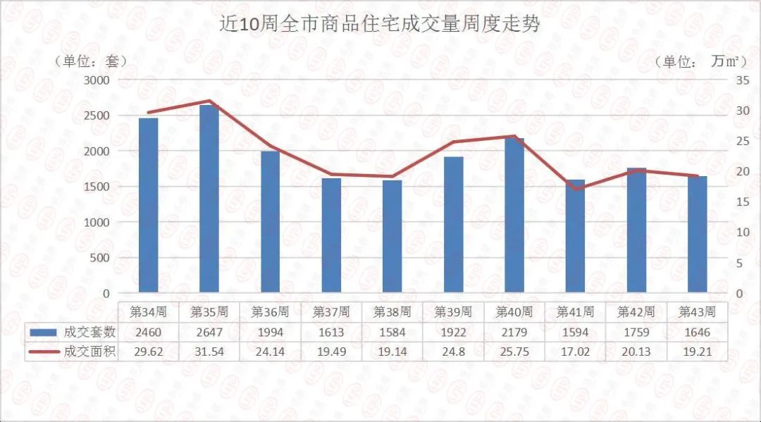 据卓易数据,上周青岛新建商品住宅成交1646套,环比上上周再次转跌,跌幅6.42%;成交面积19.21万㎡,环比上上周下跌约4.57%。从近10周的成交趋势来看,进入“金九银十”这个传统的楼市销售旺季,新建商品住宅成交远不如7、8月份,着实让青岛楼市提前“入冬”。