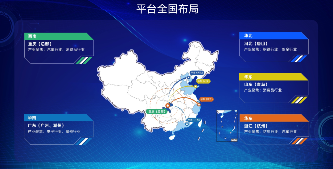 2021年4月,华通集团与飞象工业互联网、深圳华夏基石合作成立青岛鲲鸿产业服务有限公司(简称“鲲鸿公司”),正式启动了产业带运营服务合作。合资公司依托华通集团国有资本平台优势,以及飞象工业互联网的数据中台能力、资源优势和行业及平台运营经验,联合共建青岛市食品产业带C2M互联网服务平台,为青岛食品产业集群提供技术、运营支撑。