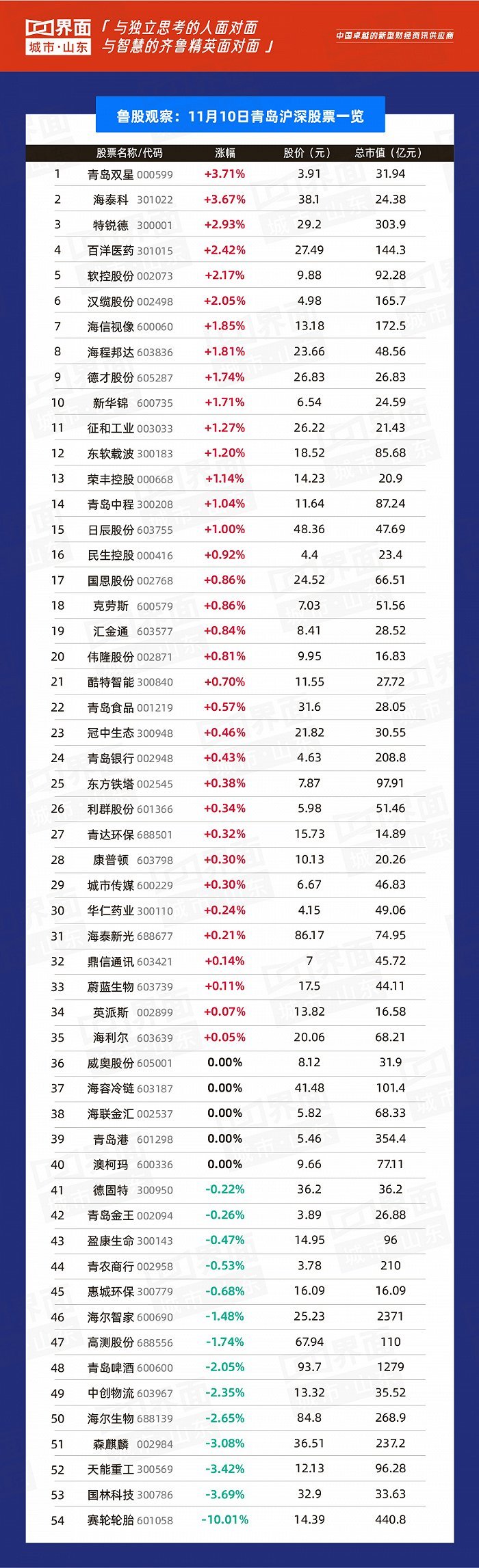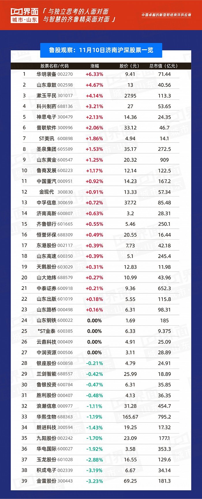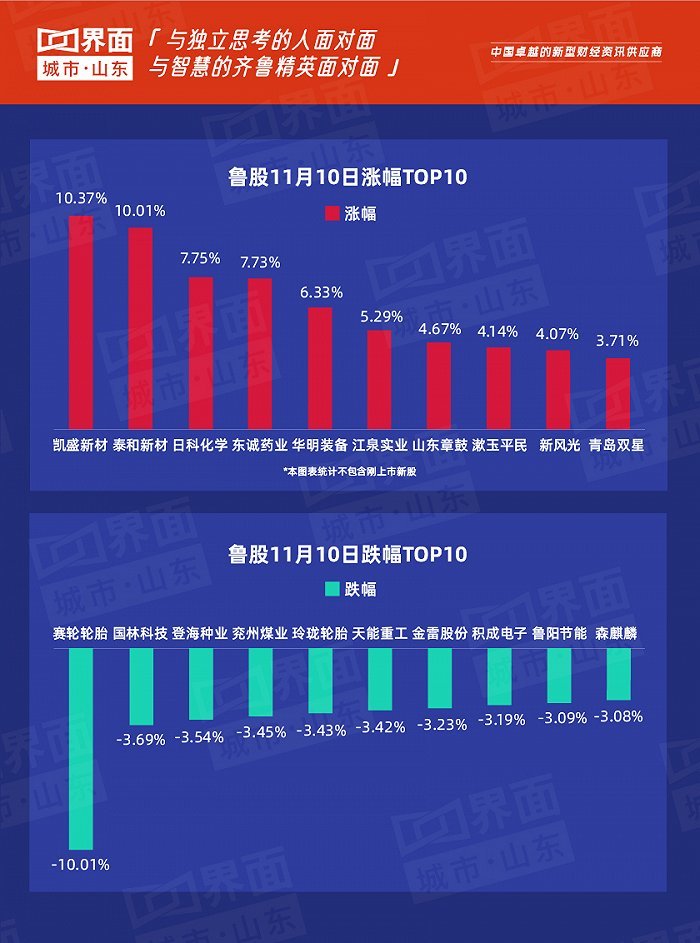 原标题:鲁股观察 |11月10日:隆华新材新股上市涨幅146.28%,全省150只个股上涨