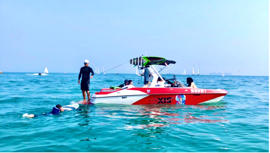 想拥抱大海、体验刺激又炫酷的花式海上运动吗?快来奥帆中心打卡吧!这里有飞驰电掣的摩托艇,惊险刺激的电动水翼冲浪,以及当下最网红的尾波冲浪。这是最适合初学者的冲浪项目,跟着船舷两侧夹带冲浪板的造浪艇前行,一次次与海浪搏击,一次次与浪花追逐,就像跃出海面的飞鱼,自由自在地在水面上来回穿梭。头顶蓝天,脚踩白浪,潇洒自如的情感涌上心头,令人着迷。目前在奥帆中心即可体验这个网红产品。黄海水上体育主营体育赛事筹备组织及策划、水上运动项目策划及推广、尾波冲浪、摩托艇驾驶培训、电动水翼冲浪板培训。