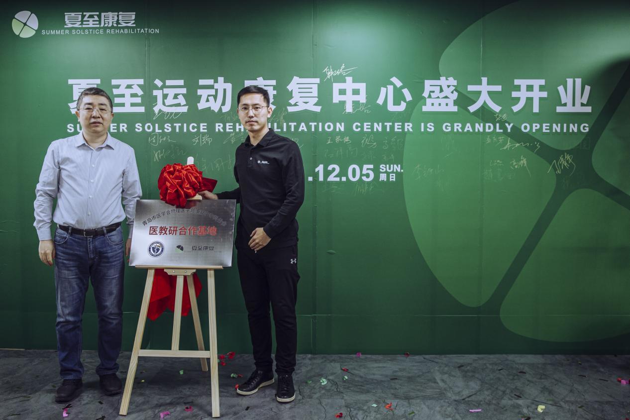 仪式中,原青岛市人大常委会秘书长、现任青岛市足球协会主席杨鹏鸣先生致辞后,各位嘉宾为青岛夏至运动康复中心进行了剪彩。青岛智能产业技术研究院副院长高彦臣为夏至康复授牌“青岛智能产业技术研究院数智医疗共建单位”。青岛市医学会物理医学与康复学专科分会主任委员李铁山为夏至康复授牌“青岛市医学会物理医学与康复学专科分会医教研合作基地”。