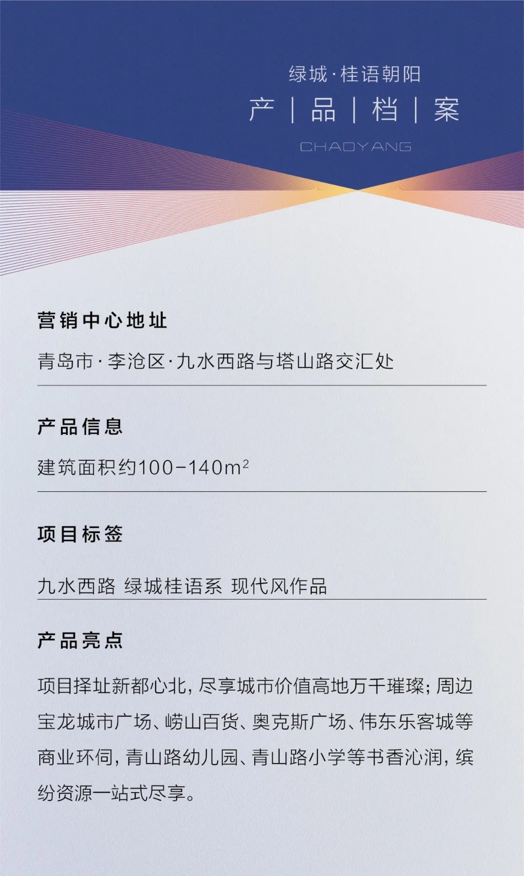 27载绿城品牌保障,16载青岛深耕品质坚实,从城市宜居样板-理想之城、金胶州人居名片-紫薇广场到中国海疆地标-深蓝中心,绿城已赢得上万个业主家庭青睐。今集27载品牌匠力,深研打磨绿城·桂语朝阳,为城市青年创新呈现现代风作品,足以焕新一城所向。