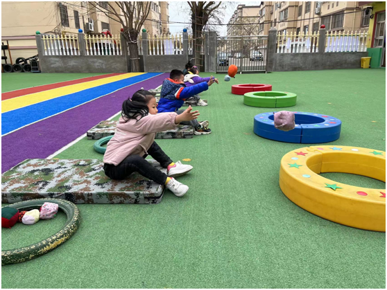 别看这小小的沙包游戏,很锻炼宝贝们的腰腹力量呢!