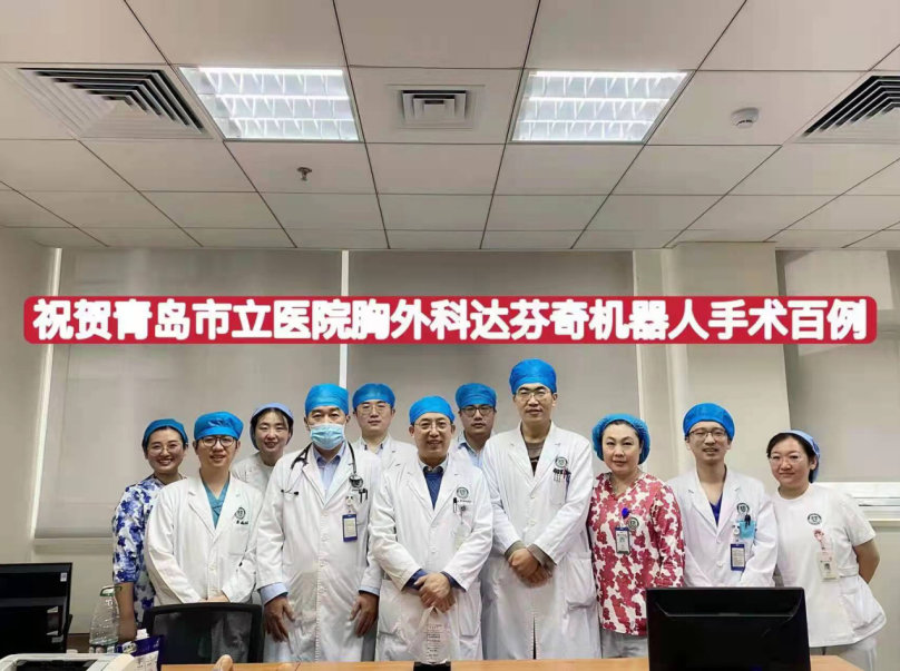 12月14日,随着一台单操作孔达芬奇机器人辅助下左肺上叶切除术的顺利结束,青岛市市立医院胸外科达芬奇机器人手术成功突破100例!技术达到省内领先水平。