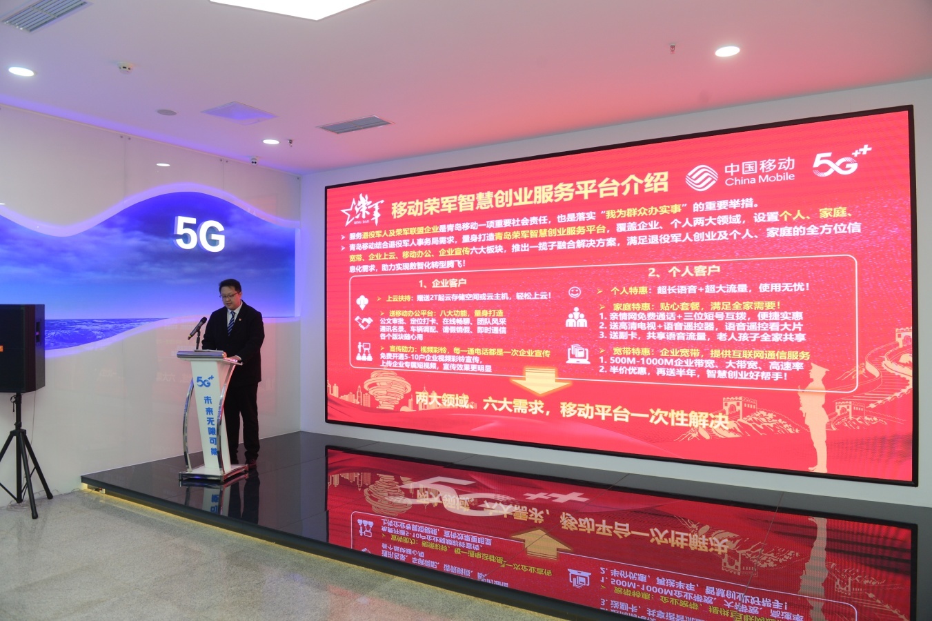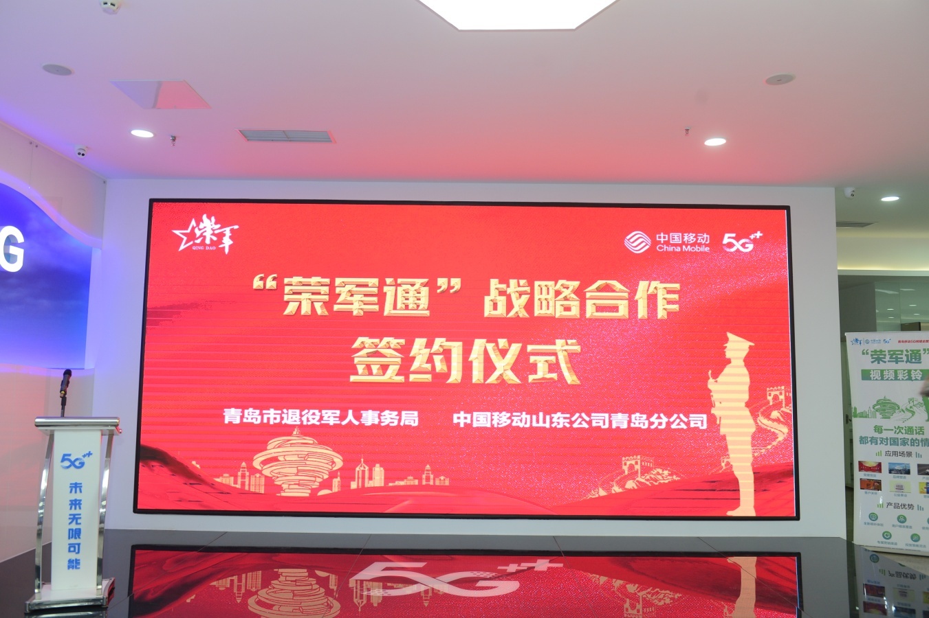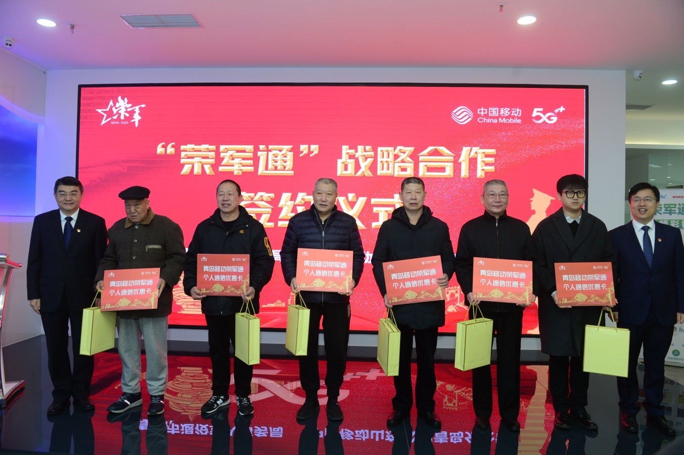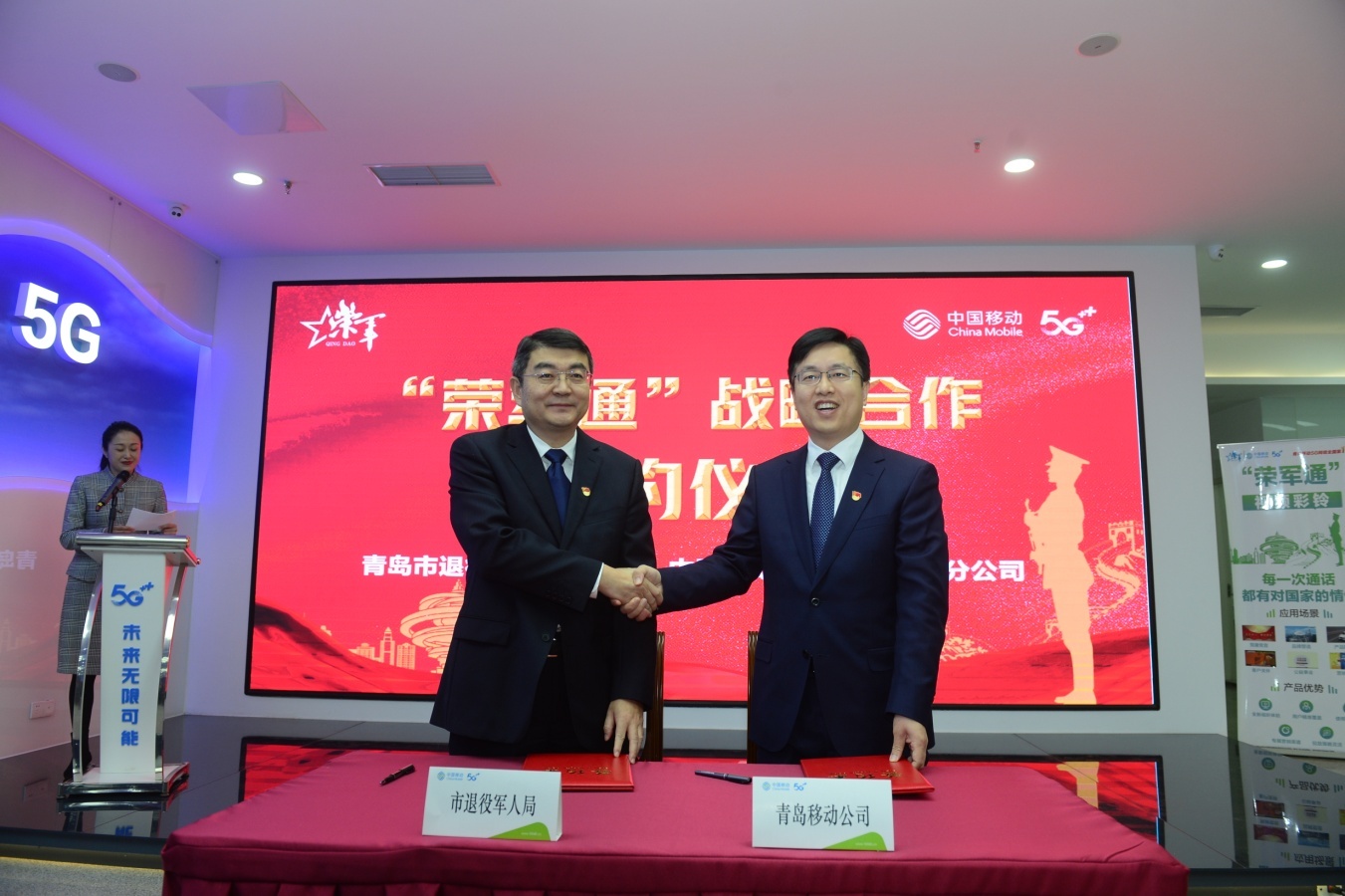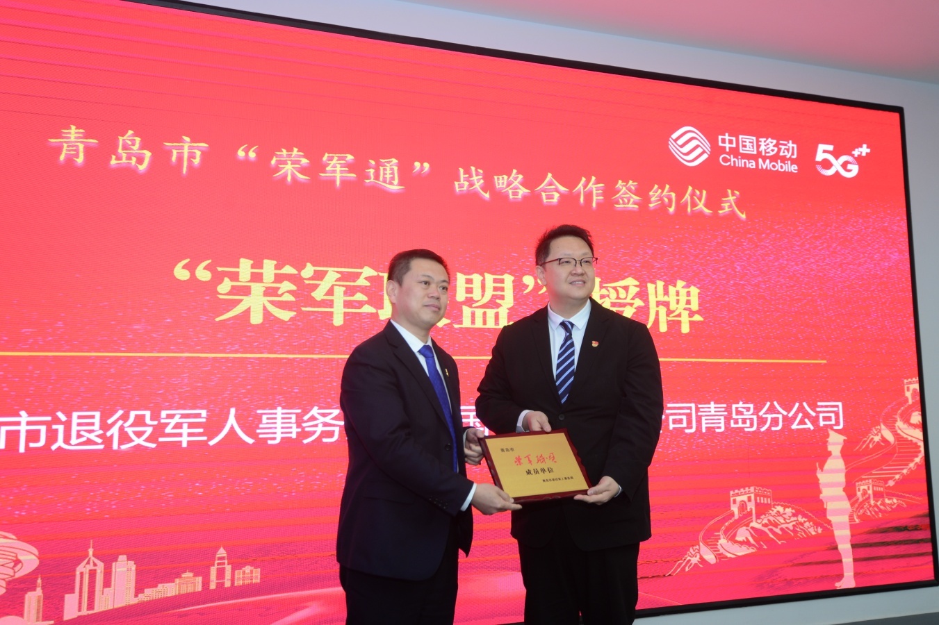 2月18日,青岛市退役军人事务局与青岛移动公司签订战略合作协议,在为青岛市军人军属、退役军人和其他优抚对象(及其家属)提供套餐优惠服务,对重点优抚对象推出宽带、电视免费优待基础上,特别推出“荣军通”智慧创业服务优待项目,为军属、退役军人和其他优抚对象(及其家属)创办企业、荣军联盟成员单位等提供专属优惠资费、“一站式”智慧服务以及企业宽带、云空间存储、云主机、旺铺网内通话等优惠套餐。此项政策惠及全市上万家军创企业和近万家荣军联盟成员单位。
