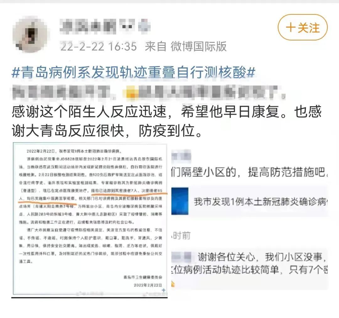 出现确诊病例后,半天的时间,从官方通报发布、确认病例所涉重要场所管控,到同步召开的全市疫情防控紧急会议,安排部署下一步重点工作……让我们看到及时响应的青岛,早已连夜行动,有序推进着相关应急处置工作。